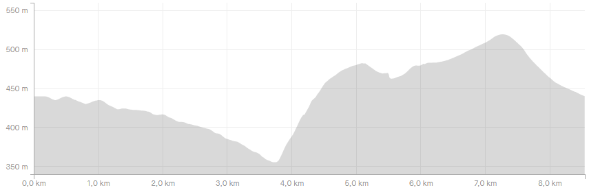 Halverwege is er een stevige beklimming (zie grafiek)