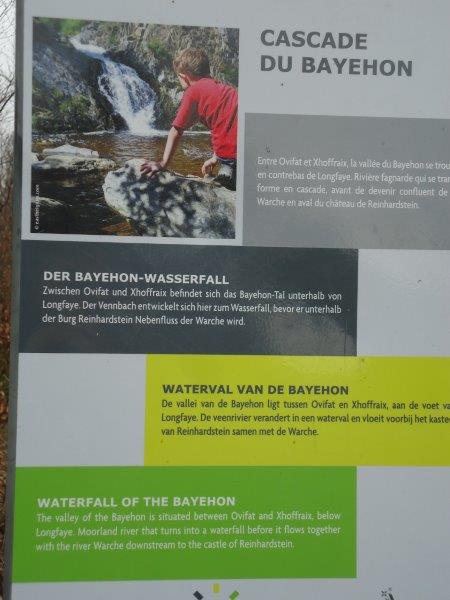 genoeg) en je ziet onmiddellijk een bord met info over de wandeling. Bewegwijzering met een groene rechtopstaande rechthoek , De wandeling is in twee richtingen goed bewegwijzerd, dus je kan deze volgen in 2 richtingen, wij zijn vertrokken langs de kant van de parking en niet langs de kant van de molen. Vanaf de parking is het ongeveer 1,5 Km wandelen naar de grootste waterval. De volledige wandeling is 9Km maar iemand die enkel de waterval wil zien kan 1.5 Km wandelen en gewoon terugkeren. |