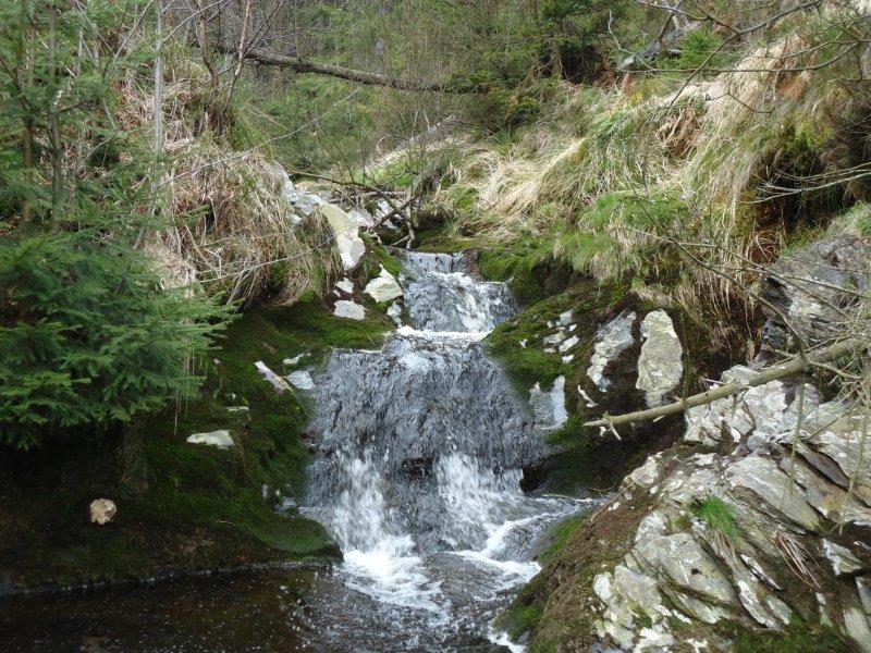 verschillende kleine en grotere watervallen, soms wat verscholen in het