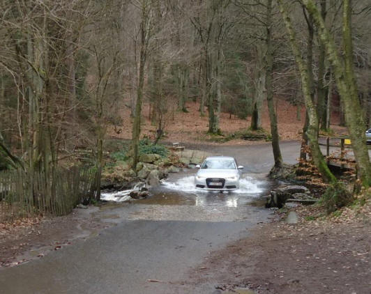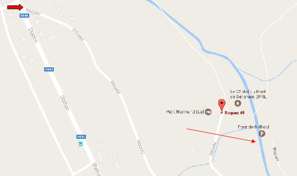 | Aan de pijl Promenade de Hoëgne (enkel te zien als je uit de richting E42 komt) sla je links af, je volgt de weg tot je aan de rivier de Hoëgne komt, je rijdt met je wagen door het water om op de parking aan te komen. |